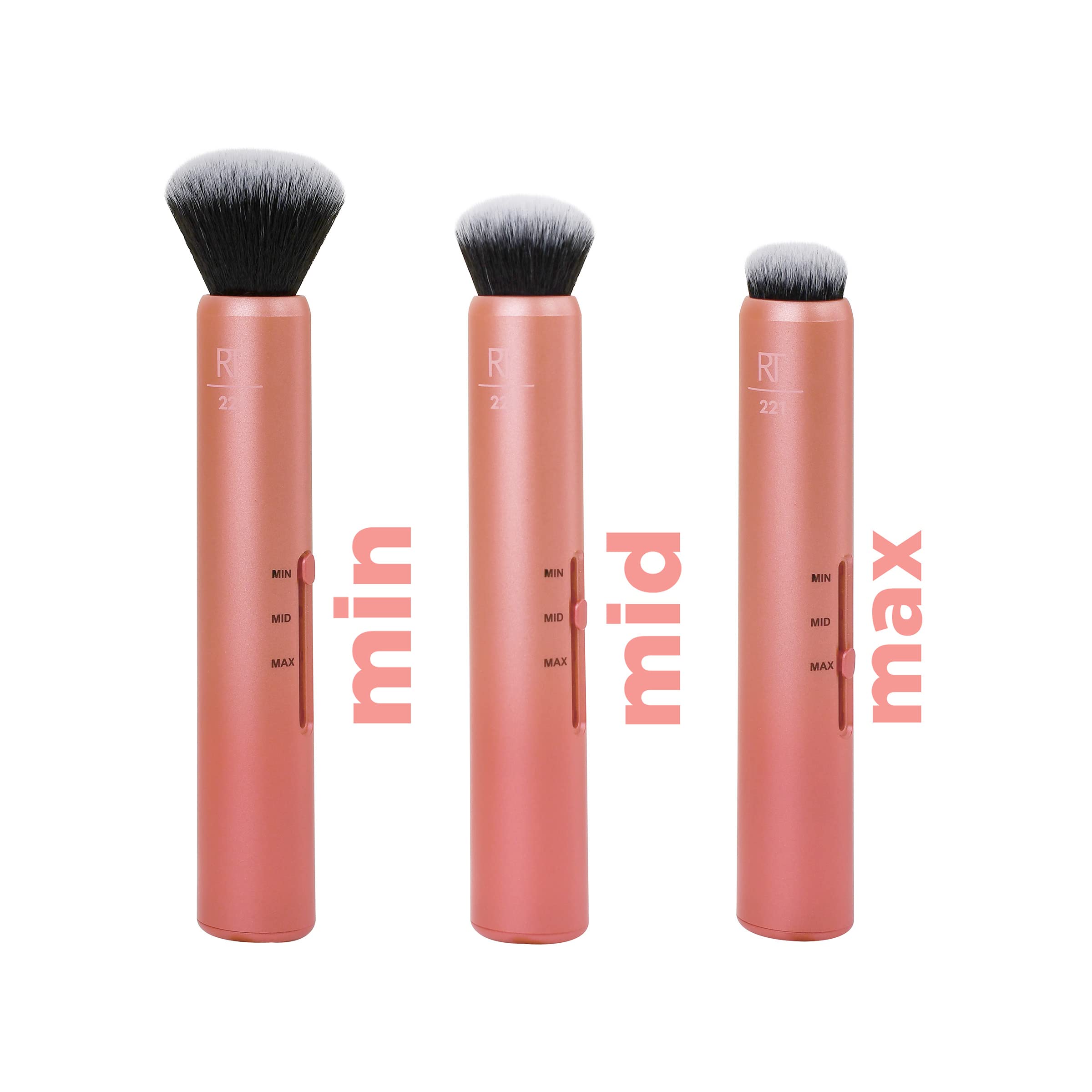 Real Techniques Custom Complexion Foundation 3-in-1 Brush, Custom Slide For Foundation & Concealer, 3 Settings For Sheer, Medium, or Focused Application, Travel-Size Kabuki, Cruelty-Free, 1 Count