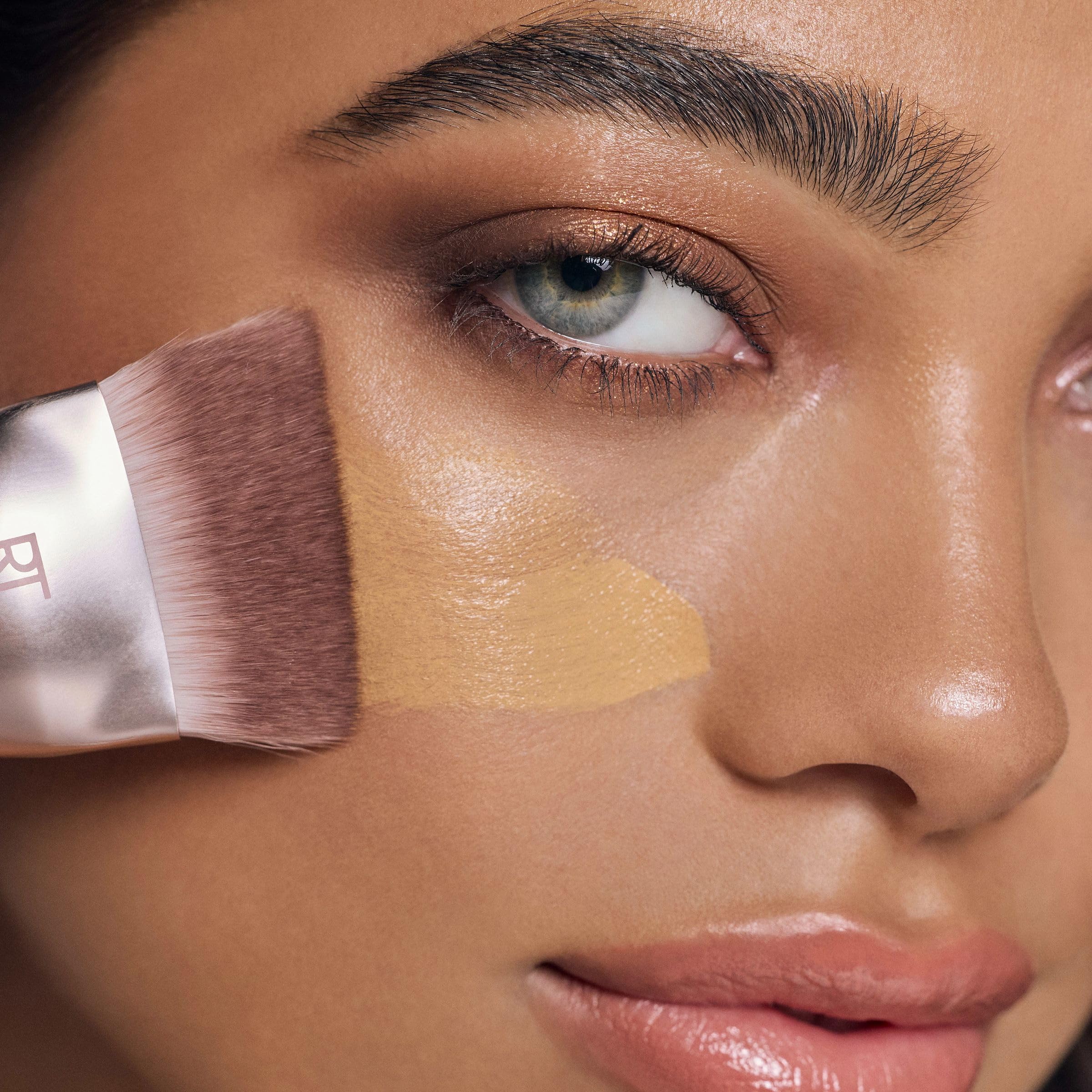 - For liquid and cream formulas – Makeup brush is best used with foundation, skin tints and illuminators. Also blush, bronzer or contour